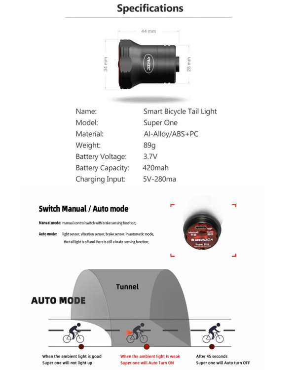 TWOOC SUPER ONE /SMART BIKE TAIL LIGHT