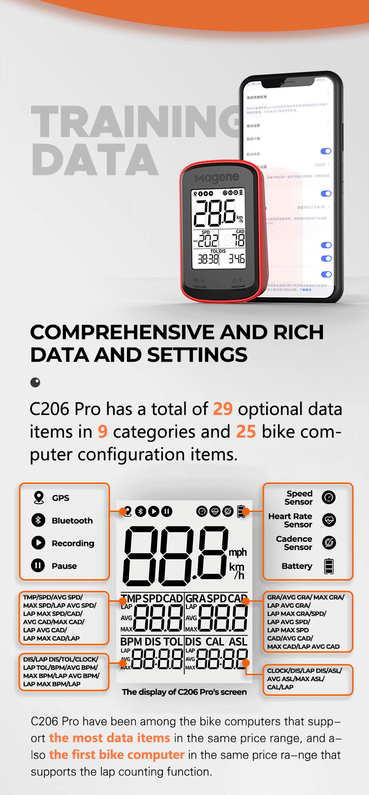 کامپیوتر و جی پی اس دوچرخه سواری MAGENE C206 PRO